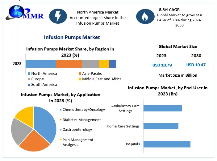 The global Infusion Pumps Market was valued at USD 10.79 Bn. in 2023 and is projected to grow at a compound annual growth rate (CAGR) of 8.8 percent, reaching USD 19.47 Bn. by 2029. This market analysis, provided by Maximize Market Research, highlights growth opportunities, key drivers, challenges, and future prospects for the Infusion Pumps industry. The report offers a comprehensive review of the competitive landscape, regional dynamics, and market trends that are shaping the future of the Infusion Pumps market.