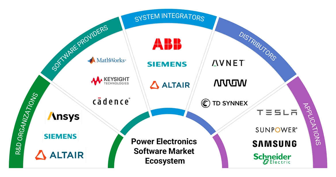 The MathWorks, Inc. (US), Keysight Technologies (US), Cadence Design Systems, Inc. (US), Synopsys, Inc. (US), Altair Engineering Inc. (US), NATIONAL INSTRUMENTS CORP. (US), Renesas Electronics Corporation (Japan), Infineon Technologies AG (Germany), dSPACE GmbH (Germany), and Siemens (Germany), Analog Devices, Inc. (US), Sidelinesoft, LLC (US), AESIM.tech (Canada), Plexim GmbH (Switzerland), Manitoba Hydro International Ltd. (Canada), Imperix power electronics (Switzerland), Typhoon HIL, Inc. (US), Mirabilis Design Inc. (US), Power Smart Control (Spain), COMSOL (Sweden), Speedgoat GmbH (Switzerland), Siemens (Germany), RTDS Technologies Inc (Canada), Powersys (France), AVL (Austria).