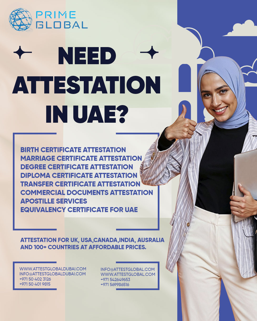 By choosing a reliable service provider like Prime Global Attestation Services, you can save time, avoid unnecessary delays, and ensure that your documents are handled professionally. With expertise in attestation from 100+ countries, Prime Global makes the process stress-free and efficient, giving families peace of mind.