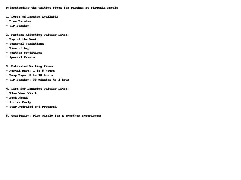 Several factors influence the waiting times for Darshan at the Tirumala Temple: